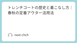 クローゼットに一枚あれば、春から秋まで長く活躍するトレンチコート。しかし、このアイテムの本当の魅力を理解している方は、意外と少ないのではないでしょうか。単なるアウターではなく、ファッション史上最も洗練されたデザインの結晶であるトレンチコート...