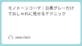 グレージュ—グレーとベージュの中間色。トレンド感のある洗練された色で、くすみが大人っぽさを演出します。難易度は少し高いですが、コーデに深みが出ます。